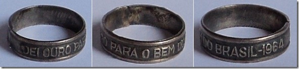 A revista “O Cruzeiro”, em 13 de junho de 1964, apresenta um balanço parcial da campanha informando que mais de 400 quilos de ouro e cerca de meio bilhão de cruzeiros haviam sido doados pelo povo e por autoridades civis e militares. Diz mais: “… a campanha, primeiro grande movimento dos ‘Legionários da Democracia’, foi aberta com a presença do senador Auro Soares de Moura Andrade, presidente do Congresso Nacional, que recebeu do Sr. Edmundo Monteiro, diretor-presidente dos Associados Paulistas, a chave do cofre em que será colocado o ouro e as doações em dinheiro que serão entregues, posteriormente, ao presidente da República, marechal Castello Branco…”