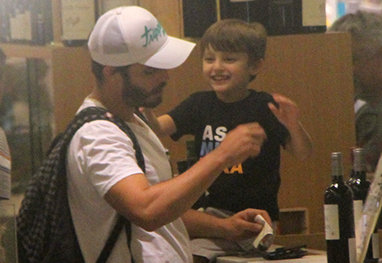 Gabriel, muito sorridente e brincando com o pai, chamou atenção pela camiseta que vestia, com a frase "As mina pira" estampada.
